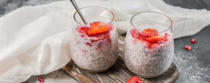 - চিয়া পুডিং তৈরি হয়ে গেলে আবার নাড়ুন। কাপ বা প্লেটে রাখুন, উপরে কাটা স্ট্রবেরি দিয়ে দিন এবং পুদিনা দিয়ে সাজান।